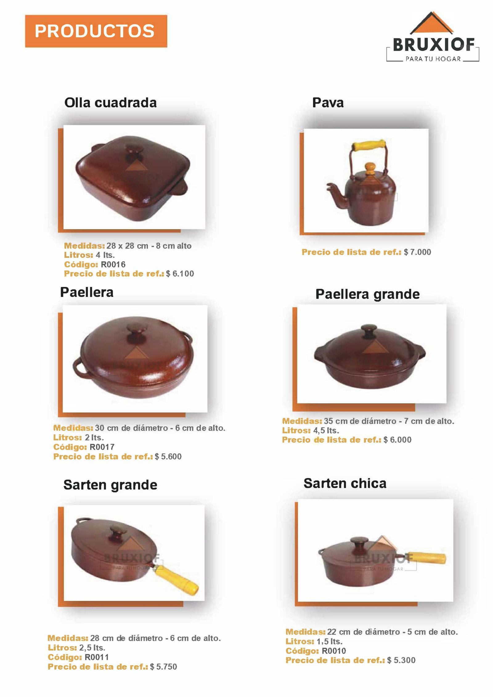"Muestrario de nuestro catálogo de ollas y sartenes":
